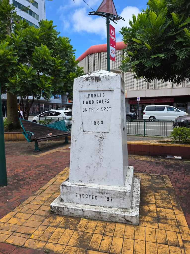 From the markets, I continued walking to the Ivi Triangle. This is a small triangular-shaped park surrounded by sidewalks and busy roads. It is a spot that has an ivi tree (hence its name), also known as the Tahitian nut tree, and a plaque. Some of the information on the plaque is not correct.