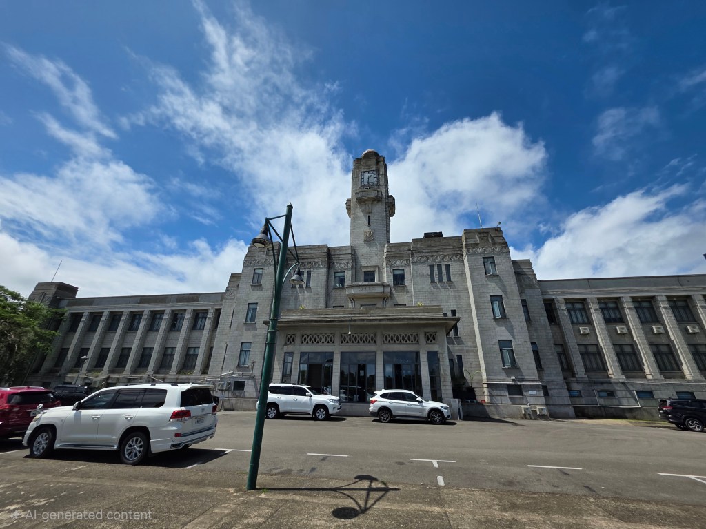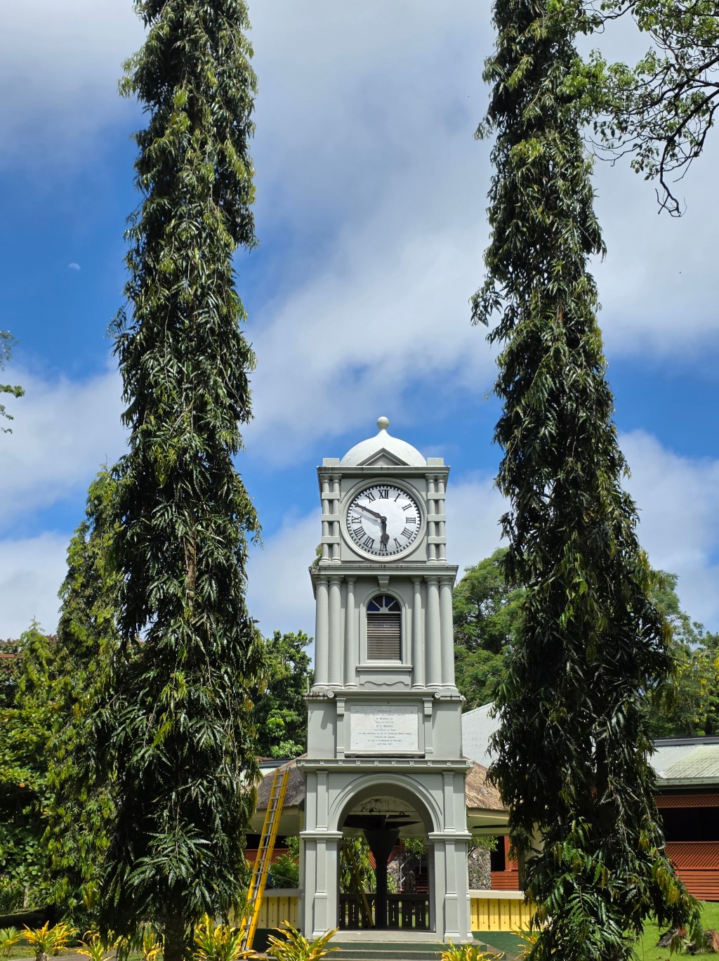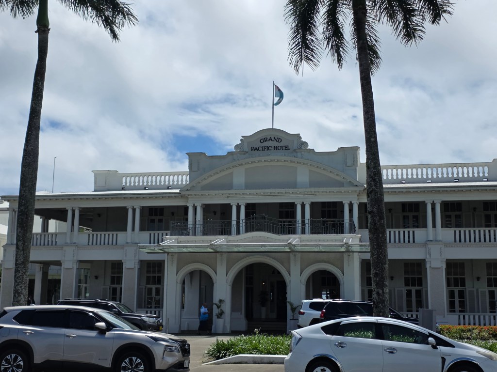 Right next door is the Presidential Palace. It was built in 1882 and reconstructed in 1928 after being struck by lightning. It is guarded by Fijian soldiers wearing white sulus (sarongs) and red tunics.