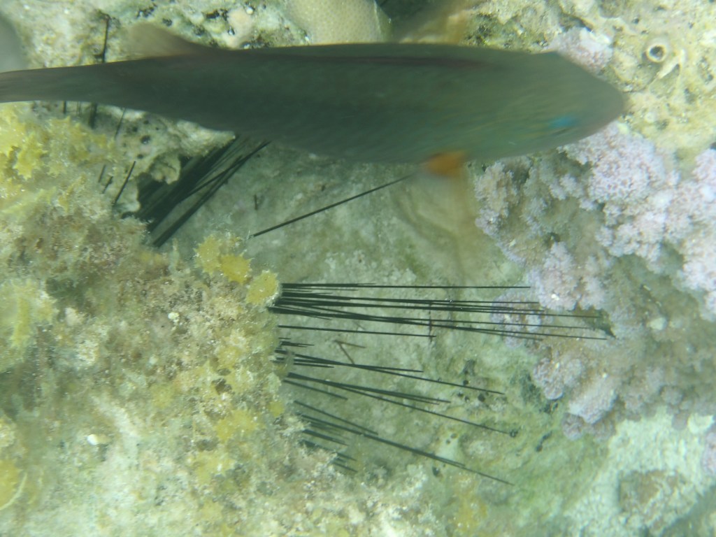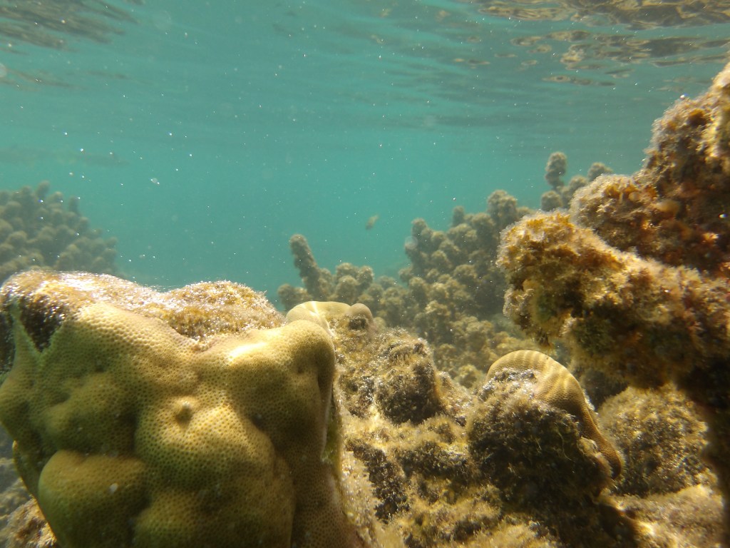 While the water wasn’t crystal clear, it was good enough for me to spend an hour swimming around and finding fish and patches of coral. Most of my purple dye was leached from my hair, though.