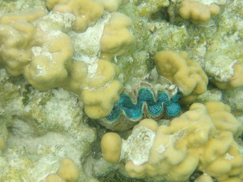 We then headed towards one of several coral gardens. Here, we spent 30 minutes swimming through fairly shallow coral beds with dozens of clams, fish, and colorful coral. I could have spent a day here exploring.