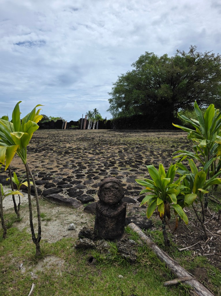 Number 3 is the marae of the Tau-‘aitu or Hititai, where priests consecrated the rites of the rahui, watched over the image of the god to’o, and fed the two guardian sharks of the sovereigns. Human sacrifices would happen on the stone placed in front of the courtyard.