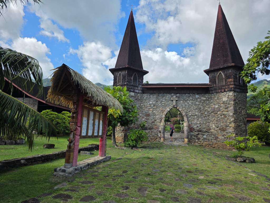 Off Main Street is Notre Dame. This cathedral looks like a fairy tale mated with Polynesian mythology. The grand courtyard and entrance are of European flair, but the woodwork everywhere is local.